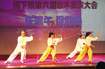 6月23日,武术协会会员在塘下张宅文化宫表演了50余个节目,太极拳、棍棒刀枪齐上阵。6月22日、23日,塘下镇还举行了乒乓球比赛和羽毛球比赛。