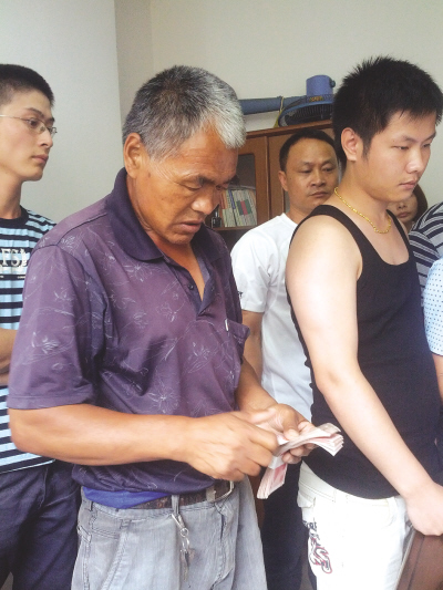 陈典清在温州、瑞安一带做内墙刮腻子的工作已经10多年了,这是头一回被拖欠工资。在这个工程里,他从2月26日开始工作到结束,工资一直被拖欠着,心里很着急,领到这20000元后,心里的石头总算放下了。