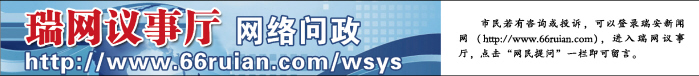 市民若有咨询或投诉,可以登录瑞安新闻网(http://www.66ruian.com),进入瑞网议事厅,点击“网民提问”一栏即可留言。