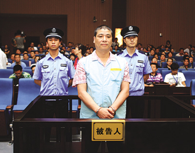 杨胜华,50岁,鹿城区人。昨日上午9点30分,他身着一件粉红色格子衬衫、黑色长裤被法警带进法庭时。