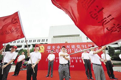 本报讯(记者 苏盈盈/文 孙凛/图)昨日早上,我市庆祝建党91周年“红七月·服务月”活动启动。市委书记陈建明宣布活动开始。市领导李无文、叶世林、陈胜峰、吴娜丽、徐琮琦、黄益友参加启动仪式。