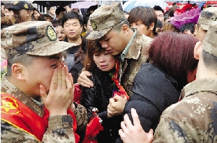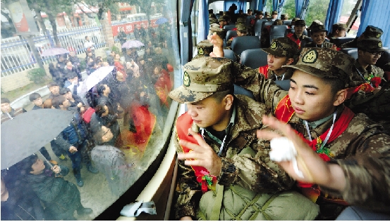 昨日,100名新兵在亲朋好友的欢送下登车启程,奔赴部队卫国戍边。市人武部工作人员表示,这批新兵政治合格、身体健康、思想积极向上,是人民军队现代化建设所需人才。据了解,今年我市奔赴军营的新兵共有500名。 (记者 孙凛)