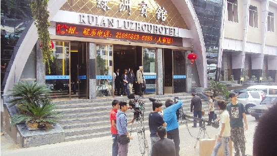 摄制组在绿洲宾馆拍摄场景
