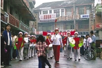 塘根村军鼓队在剧中敲打了一回