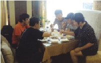 《温州一家人》的明星们住在宾馆里,除了拍片,最主要的是吃住问题了。明星们和摄制组的工作人员都怎么吃的呢?其实,这里的故事还不少。