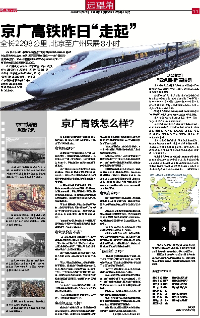 京广高铁是我国《中长期铁路网规划》中“四纵四横”高速铁路的重要“一纵”,它的开通,让我国高铁网初具规模。