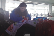 记者在客运站候车厅看到李向华一家时,妻子正在给小儿子喂奶,他则抱着大女儿在一边玩耍,他们要乘坐的汽车9时半发车,为保险起见,8时左右他们就到车站等候了。