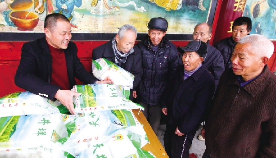 2月7日,项宝荣特地做好1000多公斤年糕,送给马屿镇篁社社区的100多户困难农户,并感谢农户对他的支持。