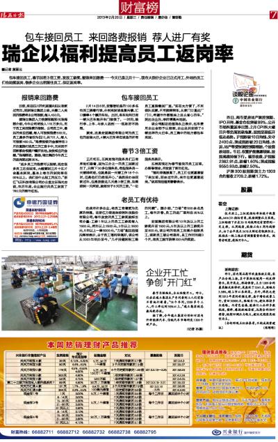 瑞企以福利提高员工返岗率