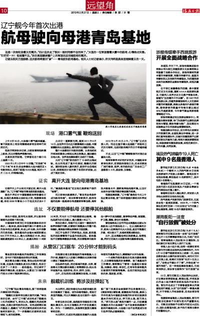 与此同时,已成功完成航母改建的大连造船厂接下来是否会承接新的任务值得关注。《解放军报》曾报道,首艘航母的改装,最核心的作用是为中国航空母舰的科研和训练提供基本的依托和支点,学习怎么造,练习怎么用。“学习怎么造”是很关键的一点,已经掌握改建技术的大连造船厂会不会承担我国国产航母的建造任务、大连港口会不会再度成为吸引世界的热点值得期待。