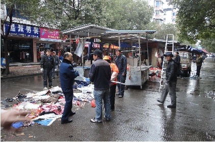 位于安阳的“小吃购物一条街”市场存在多年,由于占道经营,对交通及周边群众影响极大。2011年底,安阳中队接到了拆除“小吃购物一条街”的任务,然而面对这项任务,大家犯难了,“‘小吃购物一条街’存在达14年之久,涉及人员多,问题复杂,整治力度极大。”许璞回忆说,为了能与经营户达成共识,和谐拆除,队员们挨家挨户上门做思想工作,讲清利弊,并对他们的一些实际困难给予帮助,最终得到他们的支持,一些经营户甚至主动拆除了自己的棚架和摊位。2012年“小吃购物一条街”占道市场被成功拆除,周边群众拍手称好。