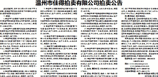 温州市佳得拍卖有限公司拍卖公告