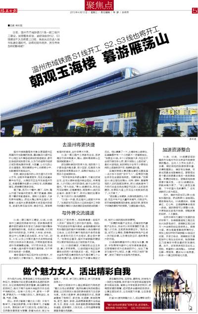 S1线一期工程开工建设,S2线、S3线将开工建设的消息传开后,很多媒体都用最华丽的语言来形容这几条线对温州整体交通网络的价值。纵观这3条线路,它们把温州市内的机场、大学城、火车站、动车站、商业中心和景区结合起来,并与飞机、动车、火车,以及公交等交通方式共同构成温州的立体综合交通系统,不同类型的客流进行快速集散运输。对于我市来说,则进一步融入温州都市快速交通网络,与外界的交流将进一步提速。