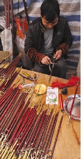 在会市上制作手杆秤的应师傅是永康人,在瑞安做手杆秤有30多年了,店铺开在塘下赵宅,一般温州地区的会市他都会参加,“因为会市上的生意比起平常要好很多”,他说。
