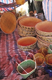 有木制品、铁制品,当然少不了竹制品。记者在会市上见到好几个出售竹制品的摊位,来自乐清的徐师傅也是每年必赴海安会市,他说,现在比较多见、使用比较广的是竹家具,但一些竹农具如竹筛、竹匾、竹帽、竹篮等,在现代家庭中已较少出现了。