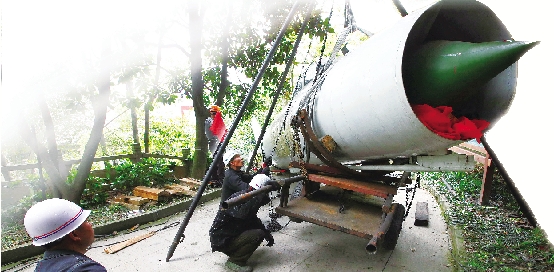 “过五关斩六将”,退役“歼8”飞机前天“爬”了十余米,到达西山第一个转弯口。昨日上午,经过约5个小时的努力,飞机顺利通过第一个转弯口。至15时30分,飞机前进120多米,抵达革命烈士陵园下的台阶前。