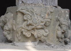 进入庙内,只见正殿曹三王(曹霭、曹霅、曹昌裔)神位前的四根木柱子下的石柱础不翼而飞,取而代之的是堆起来的七零八落的石头与砖头,原本放置石柱础的地面也显得坑坑洼洼。上泽村一位姓曹的村民介绍,被盗走的四块石柱础特别精美,上面有花卉、狮子等纹饰。市文物馆文保部工作人员表示,这四块石柱础工艺精细、形象生动,这样的石柱础在我市独一无二,具有较高的文物研究价值。