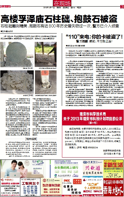 高楼孚泽庙石柱础、抱鼓石被盗