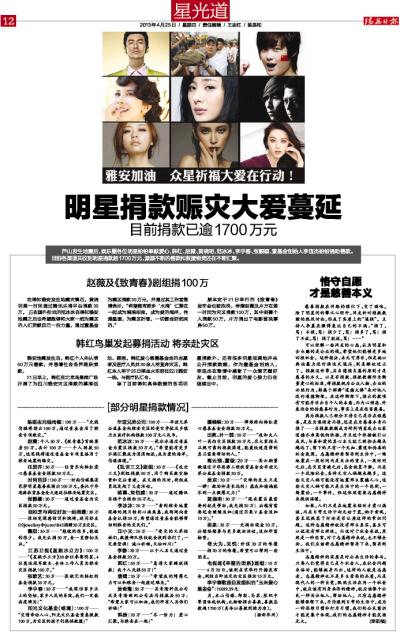明星捐款赈灾大爱蔓延