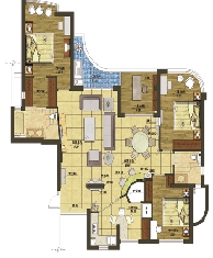 如今,大部分设计师在设计平面案例时,都是按照原有的建筑结构进行布局规划。本案打破传统模式,把门厅、客厅及餐厅等空间连接起来,形成一个完整的空间,使得视线更加开阔。