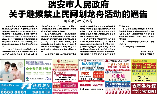 三、宣传部门要加大对禁止民间划龙舟活动管理的宣传,加强舆论引导;各地要组织形式多样的文体活动,营造浓厚的端午节文化氛围;广大群众应充分理解和全力支持市政府禁划龙舟的决定,积极配合做好禁止民间划龙舟活动管理工作。