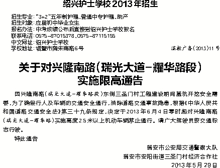 绍兴护士学校2013年招生