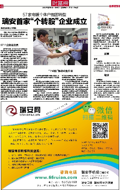 瑞安首家“个转股”企业成立