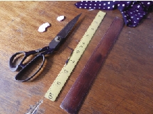 裁缝尺、粉袋、剪刀针线、缝纫机、熨斗