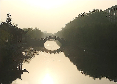 来到扬州,已是黄昏。暮色渐渐四合,清清的河流纵横城市间,让这个城市多了几分妩媚,也多了几分迷离。我不知这些闪亮在夜色里的水光,是否就来自隋炀帝所开凿的运河。三两桃花、垂柳拂水、河上人家,以及飞翘的瓦檐,已足见水墨扬州的风采。