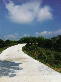 夏日的清晨,福泉山便在晨曦中掀开迷人的面纱。山道盘旋狭窄陡峭,富有经验的司机把握好手里的方向盘,流动的车辆流畅的线路,与大山的节拍相吻合;绿意写满山野,山坡上草木承受江南的梅雨滋润,焕发青春,山中的芦苇长势汹涌,在蓝天下潇洒地招手。途经一条岔道,往右驶去,迂回上山,一路上不见民房山民,不见车辆。通往山顶上的鱼形的水泥山道,极像双色太极图阴阳图中的一部分,在蓝天白云下意味深长。抵达山顶,竟有稀疏几间民房,海拔已达500米了。