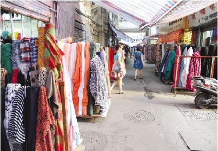 “以前经济刚起步的时候,服装店不多,买衣服的渠道少,所以这里人气旺,生意好。而现在商城发展起来了,周边城市也逐渐有了自己的布料市场,来这里批发的大大减少,一般就接些零售生意,赚不到多少钱。”一店主金大姐说。