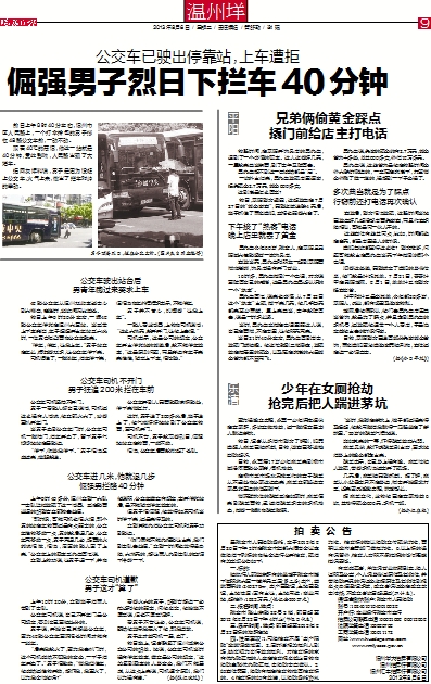 前日晚上,记者联系了温州城东公交公司的胡总。她说,公交车司机当时没有停车载客,确实是公司的规定,“这关系到乘客的人身安全,我们不能马虎,从这点上来说,司机遵守原则,我们认为没有错。” (据《钱江晚报》)