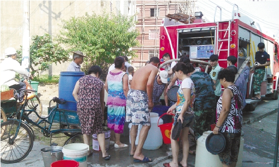 打开龙头,白花花的自来水“哗哗”地从消防车的出水管道倾泻而出,流进湖岭镇岩头村村民的水桶里。日前,湖岭镇专职消防队安排两辆消防车,每天载着近10吨清水到村里,缓解村民的用水难问题。