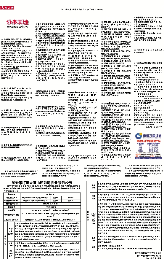 ■ 瑞安市车辆停泊开发服务有限公司(国有企业)招聘咪表管理员数名,年龄40岁以上,联系电话:13587558118。