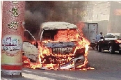 9月16日16时15分,市民韩先生报料,在塘下邵宅村名品街与塘下大道交汇处,一辆七座面包车发生自燃,目前事故原因还在调查中。 (见习记者 陈立波)