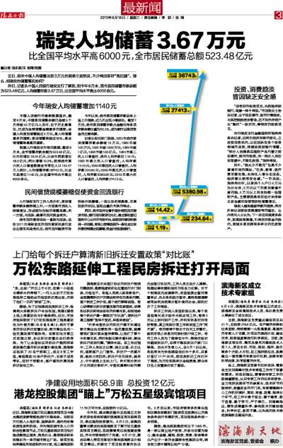 瑞安人均储蓄3.67万元