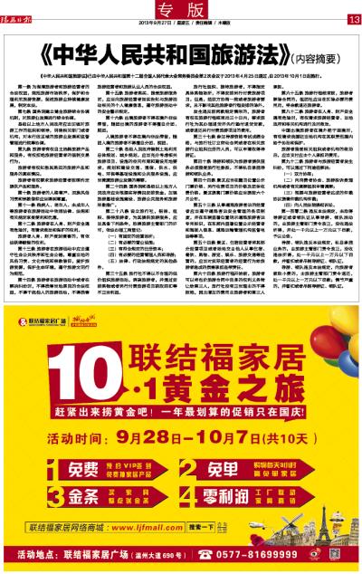 《中华人民共和国旅游法》(内容摘要)