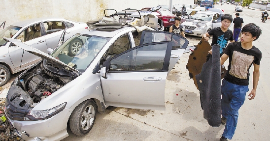 “估计现在所有4S店里的拖车都在路上了!”“目前已接到300多个车主要求拖车的电话了!”“这两天,来加油站加油的车比平日多,主要是因为周湖加油站受台风影响,目前仍在装修中”……台风过后,我市各大汽车维修店、加油站排满前来维修和加油的车主。