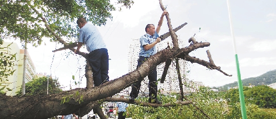 这是城建监察部门救灾工作中一个小缩影。据了解,接到汛情通知后,市城建监察大队立即启动抗台应急方案,并加强巡逻巡查,消除安全隐患。台风过后,城建监察部门积极开展灾后救助工作,累计出动城管执法队员和民工520人次,清理拆除危残户外广告设施265处,总面积约8300平方米,有效排除安全隐患。