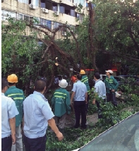 “菲特”对我市的园林绿化造成了严重影响,市区3000多棵行道树在暴风雨中出现倒伏、倾斜、折枝短截、露根等现象。为尽快恢复园林绿化景观,市绿化养护中心第一时间启动防灾预案,由中心领导带头成立抢险队,不分昼夜、废寝忘食进行抢险护绿工作。
