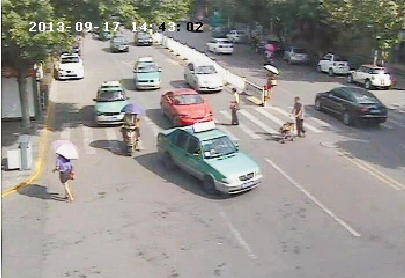 9月17日14时42分,一女子在万松东路邮电大楼前的斑马线上伸手拦出租车,随即,一辆出租车停在了该女子前面,该出租车停的位置是斑马线上的直行道,跟在后面的车辆纷纷急刹车。
