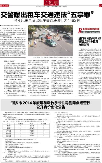 瑞安市2014年度烟花爆竹季节性零售网点经营权