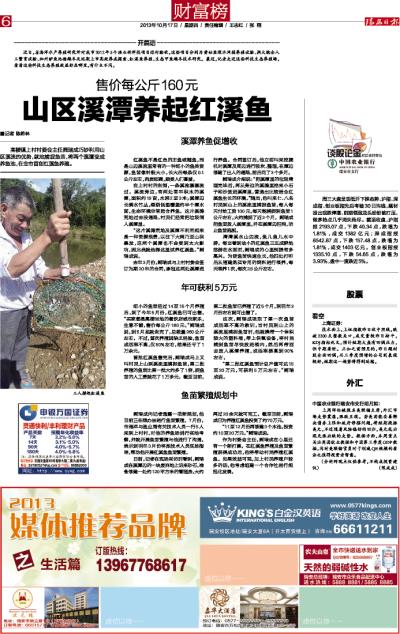 山区溪潭养起红溪鱼