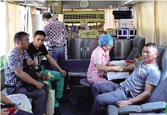 10月11日上午,塘下镇鲍田办事处组织工作人员、辖区村“两委”、村民代表、村入党积极分子等30多人,开展无偿献血活动,共献血近万毫升。 (见习记者 陈立波)