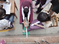 全校学生按年段分别参加了50米、坐位体前屈、50米×8往返跑、1分钟跳绳、1分钟仰卧起坐、肺活量等项目的测试。