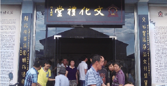 在两个文化礼堂的正门口,都挂着“文化礼堂、精神家园”标识,大门左右贴着一副对联:“文化礼堂崇善文化习礼教,精神家园振奋精神建家国。” 文化礼堂的内涵和意义呼之欲出。