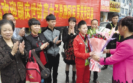 本报讯(记者 陈希林/文 见习记者 王鹏洲/图)昨天下午,塘下镇驮山社区梅林村可谓热闹非凡,许多群众早已等候在明途饭店前,欢迎第29届蹦床世锦赛女子单跳项目个人和团体冠军贾芳芳回家。