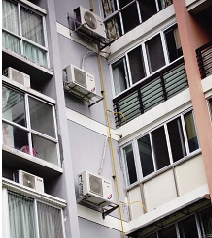 “其实,只要安装得离燃气管道远一些就好了。”物业工作人员说,“房子设计起来就是这个样子,一层三户,中间的那户空调外机就只能安装在那个地方。”