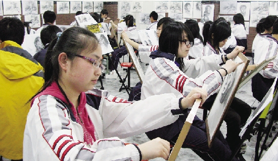 高中学生到高二要分文理班,然而在龙翔高中,自1996年以来,除了分文理班外,学生还有一个选择——美术班。