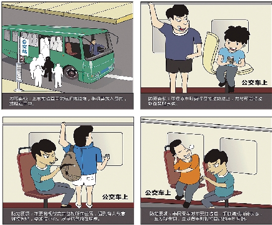 乘坐公交车时,市民要注意不要挤在车门口,注意碰撞你的人及周围紧贴你的人。坐在双人座上,要注意同座位或后面人的“第三只手”。